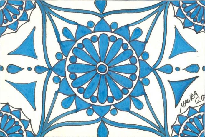 Postal de Maura Di Giulio, que vive em Pollutri, Itália, para a V CONVOCATÓRIA de Arte Postal – My paper tile – O meu azulejo de papel