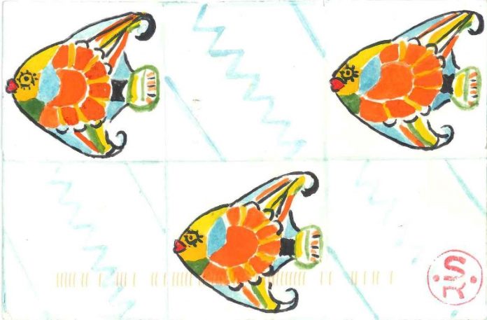 Postal de Sabela Baña, que vive em A Coruña, España, para a V CONVOCATÓRIA de Arte Postal – My paper tile – O meu azulejo de papel.