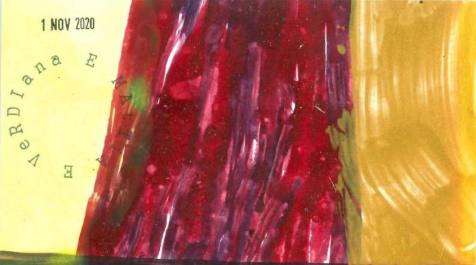 Postal de Verdiana Calia e Mattia Montemezzani, que vivem em Milão, Itália, para a  V CONVOCATÓRIA de Arte Postal – My paper tile – O meu azulejo de papel