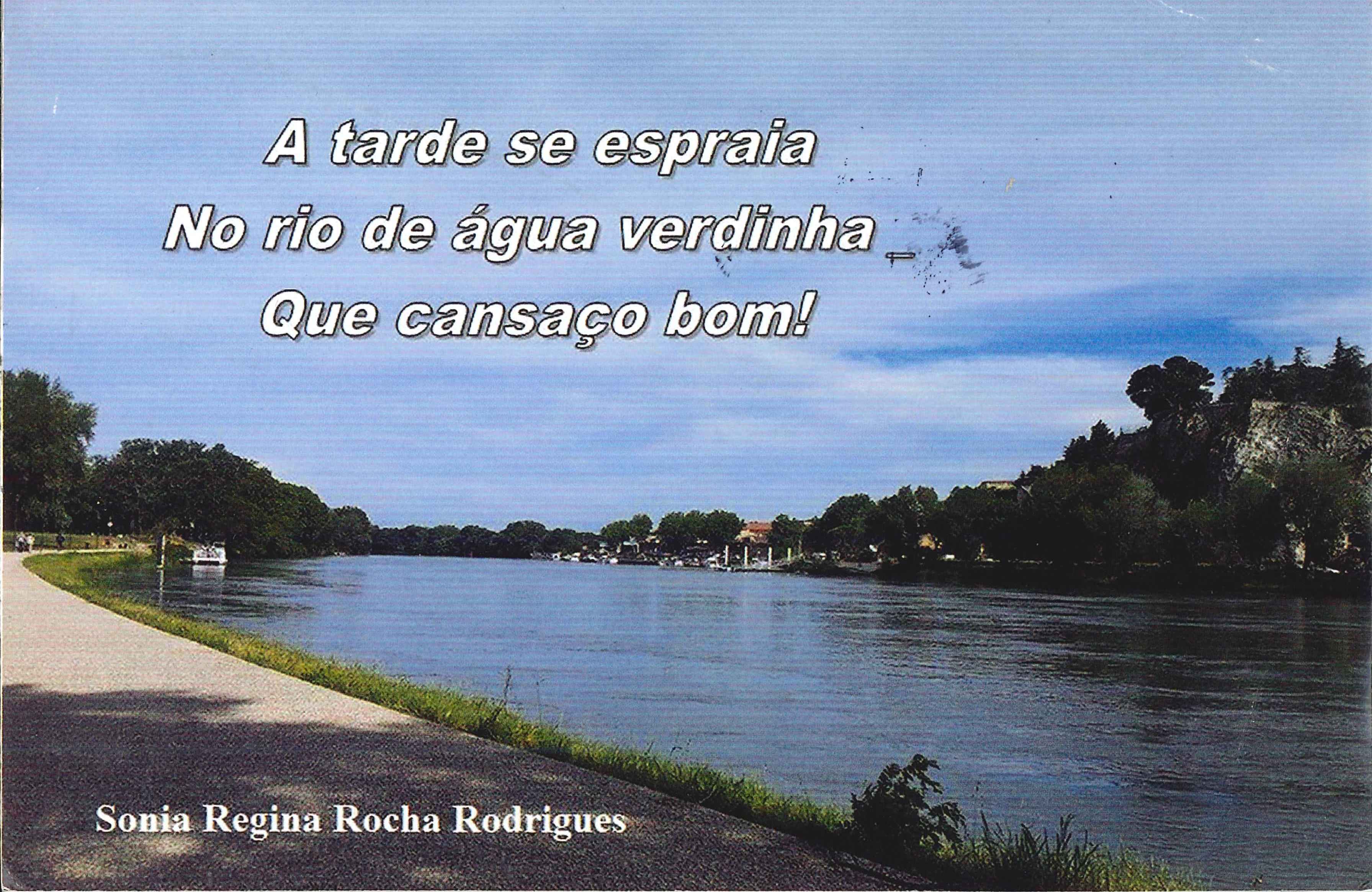 Arte Postal O meu rio por Sonia Regina Rocha Rodrigues Por Correio do Porto - 3 Junho 2018 0 1328 Compartilhar no Facebook Tweet no Twitter A tarde se espraia No rio água verdinha Que cansaço bom! Sonia Regina Rocha Rodrigues vive em Santos, São Paulo, Brasil. Partilha