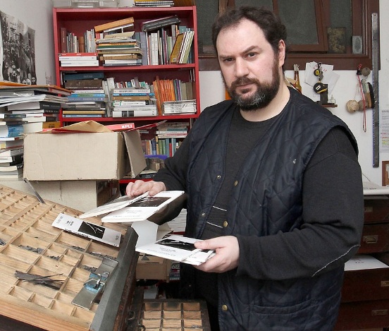 Criador das Edições 50 Kg, uma das duas únicas editoras integralmente artesanais ainda existentes em Portugal, este poeta-tipógrafo-professor desempregado assume-se como “um amante da dimensão física dos livros, inexistente no digital”. Os rudimentos tipográficos aprendeu-os na Internet, sorvendo o máximo de elementos de uma arte hoje quase extinta, mas nem por isso menos essencial.
