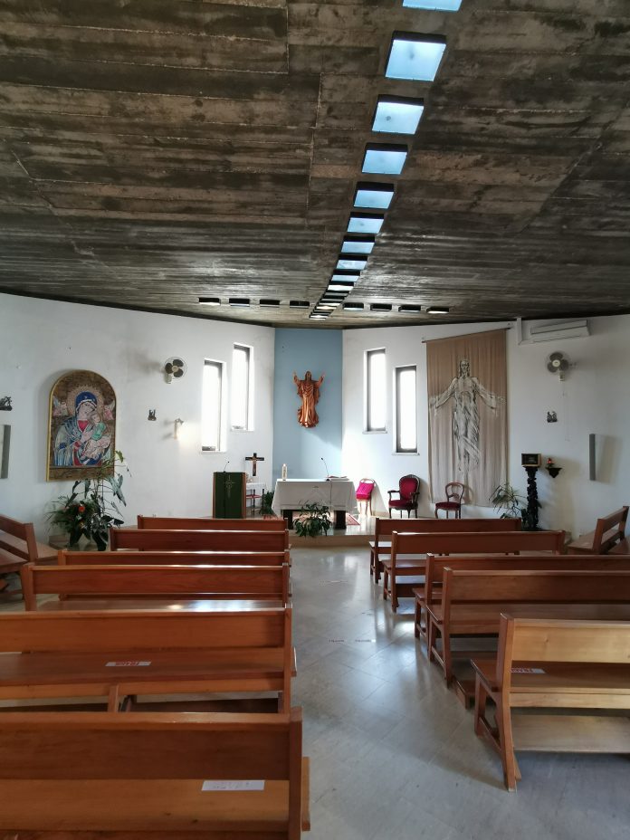 Do outro mundo Igreja Nossa Senhora do Perpétuo Socorro em Burgau Por Correio do Porto - 16 Julho 2022 0 820 Compartilhar no Facebook Tweet no Twitter O teto desta igreja tem a forma de uma onda sendo visíveis as marcas das tábuas da cofragem Quem estiver com atenção ainda consegue ouvir o ranger da madeira a ceder ao peso do betão PML 1 of 3 Partilha