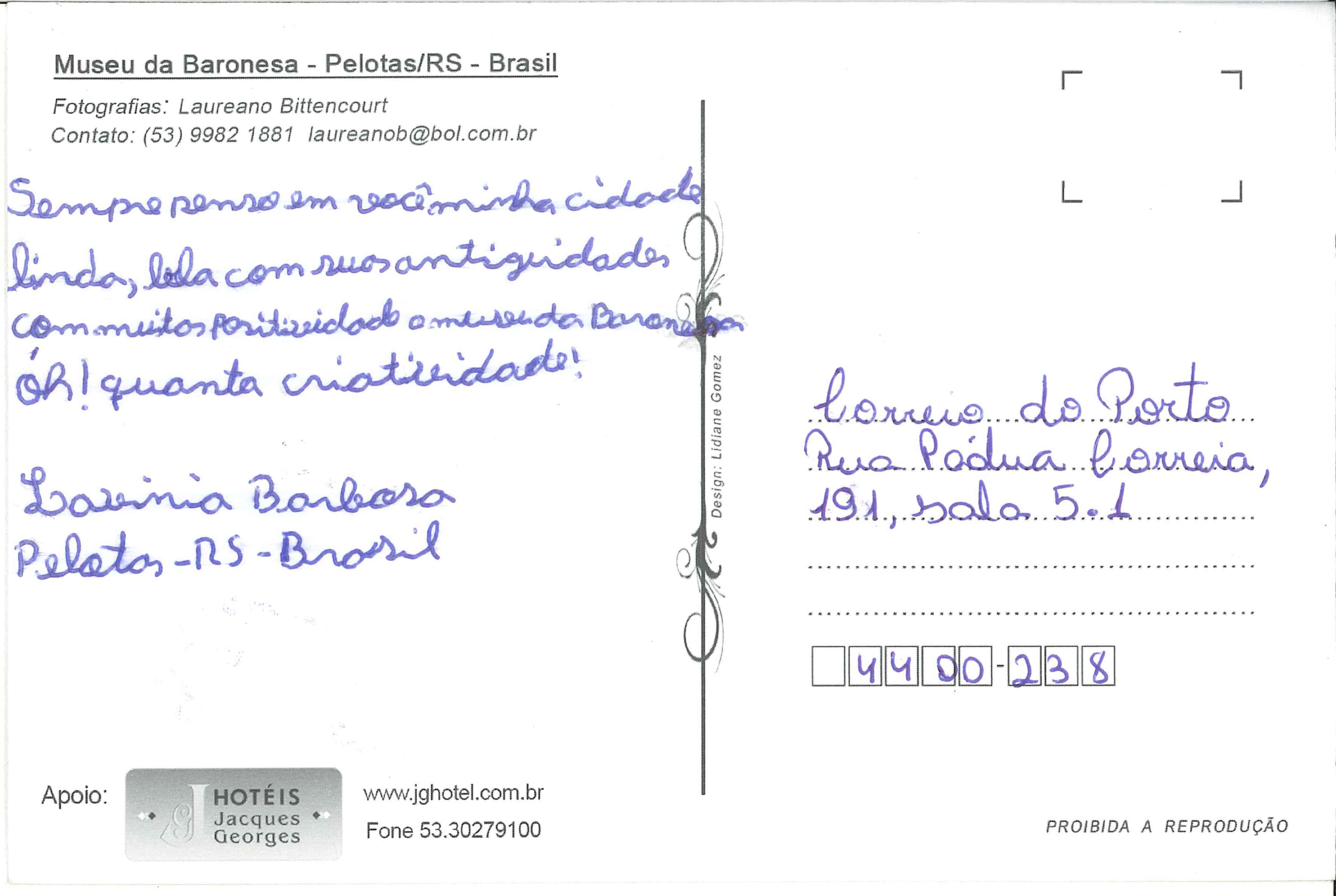Histórias em Postais Minha cidade linda Por Correio do Porto - 23 Janeiro 2017 0 1127 Compartilhar no Facebook Tweet no Twitter Sempre penso em você minha cidade linda, bela com suas antiguidades com muita positividade o Museu da Baronesa Oh! quanta criatividade! Por Lavinia Barbosa, que vive em Pelotas, Brasil. Partilha