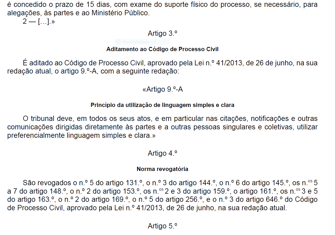 Decreto-Lei n.º 97/2019, de 26 de julho, Procede à alteração do Código de Processo Civil, alterando o regime de tramitação eletrónica dos processos judiciais. (Entrada em vigor: 2019-09-16)