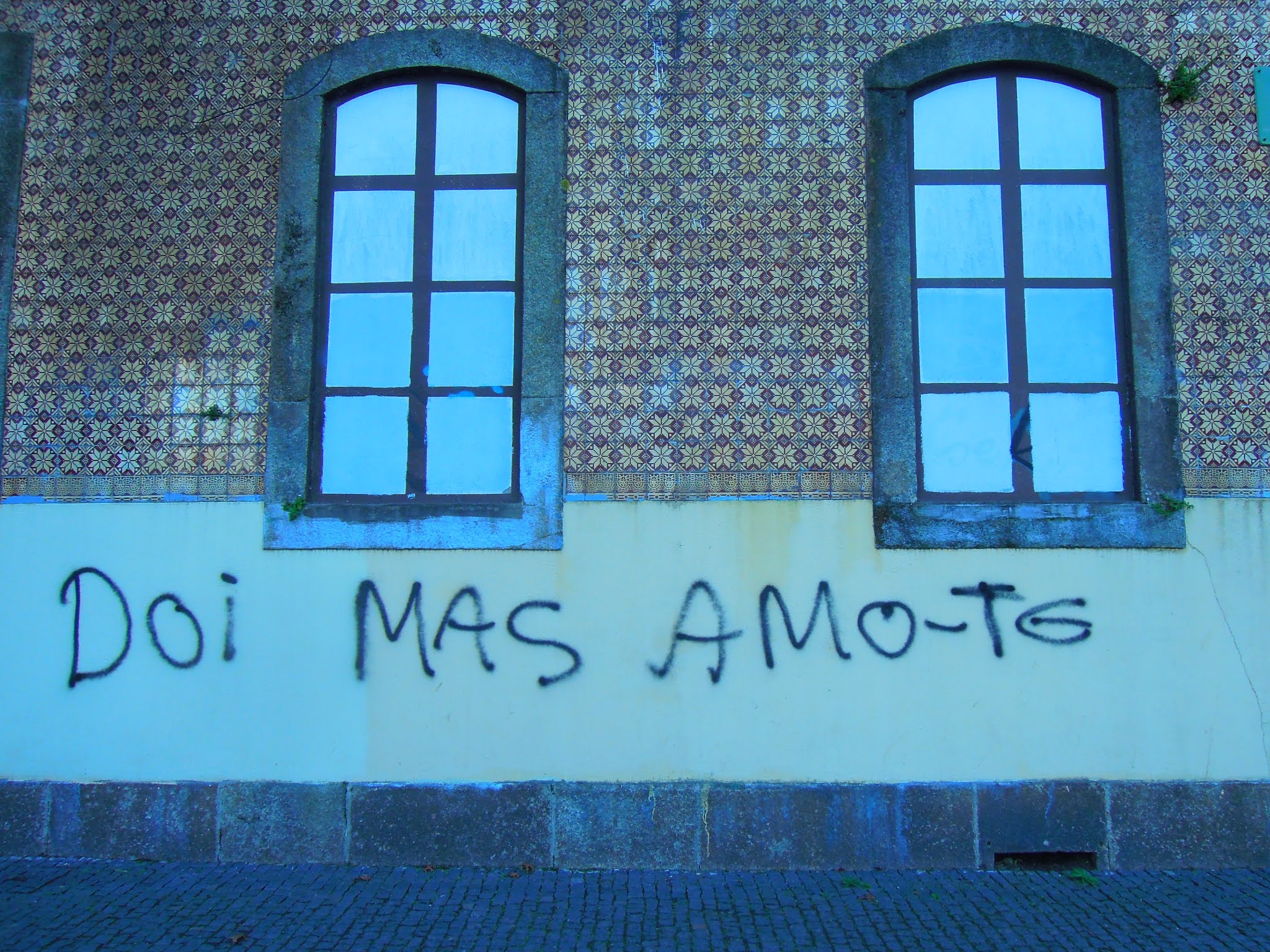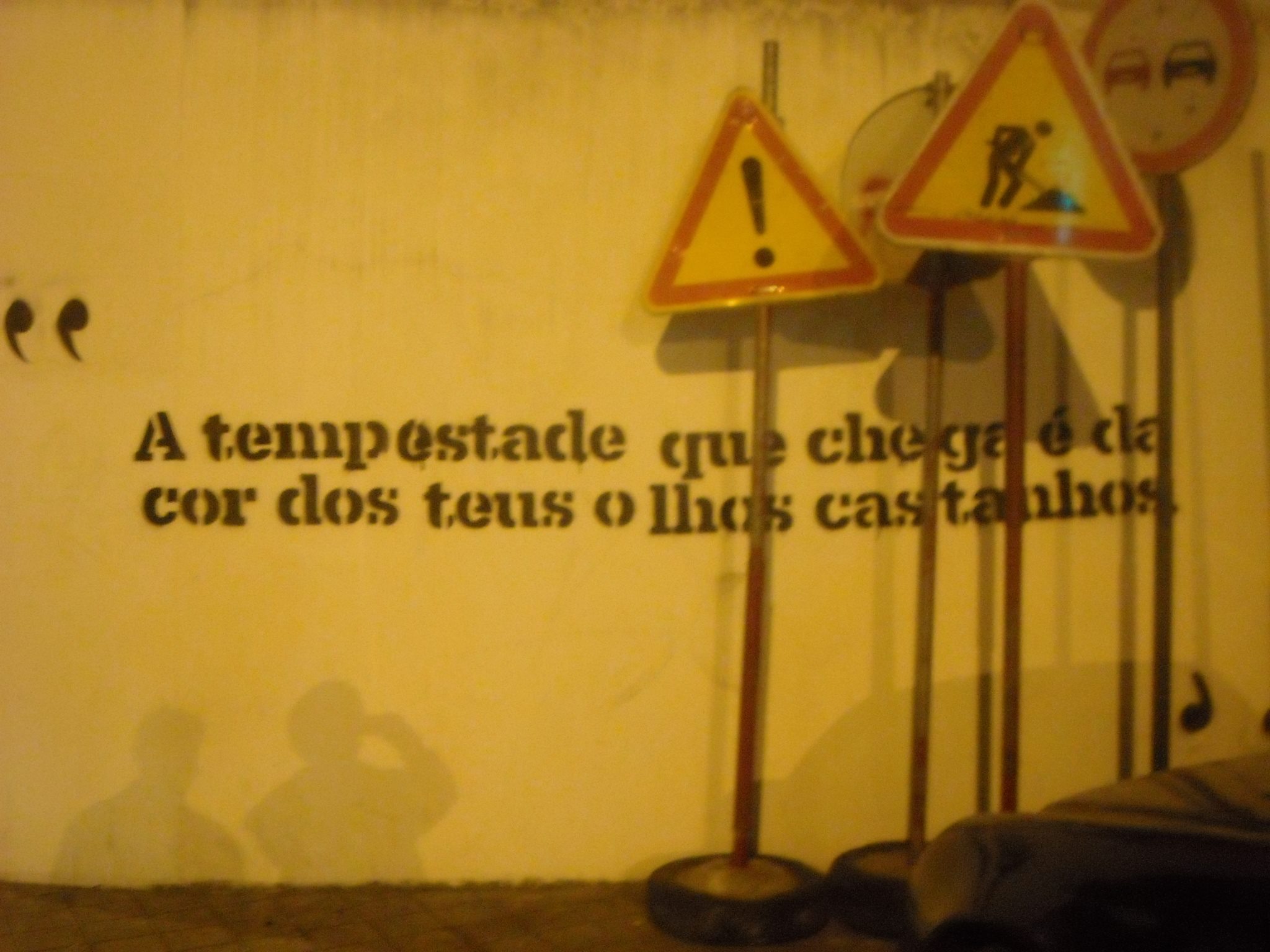 Frase inscrita em parede de edifício sito na Rua da Alegria, Porto