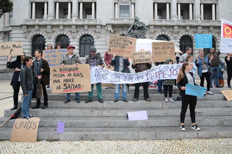 Manifestação contra os despejos ocorrida no dia 9 de junho em frente à C. M. do Porto.