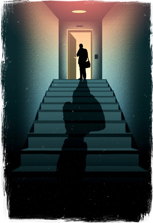 Os degraus estão gordurosos, tive de me agarrar ao corrimão. Lembrei-me outra vez que tinha o maldito M.A.P.A. anexo ao meu corpo. Pareço o Robocop. Vamos lá! Voltei para trás, subi os degraus aos pares, transformei-me no U. Bolt, testo a minha rapidez, a minha endurance. Já corri uma meia-maratona quando estava no pico da minha forma. Não posso permitir-me ser cardíaco ou hipertenso ou o raio que o parta, era-me só o que faltava. Doze degraus em três segundos, não está mal para prova de esforço. Devo ser o gajo mais rápido deste prédio, este pensamento serve-me de consolo por enquanto. Ponho a mão no coração e por nenhum motivo em especial penso numa vagina com uma aorta grossa a bombear sangue. Devo estar a ficar maluco. A seguir ao ecocardiograma, vou fazer um eletroencefalograma. Afinal para que é que eu pago o seguro de saúde? Tiro o kispo e inspiro fundo. A porta do 4º Frente já está fechada. Ouço uma peça de música clássica que vem do fundo do corredor. Não sabia que tinha vizinhos eruditos, o filho do meu vizinho de cima só ouve reggaeton. Tenho de descer as escadas mais vezes. Será uma passacaglia de Handel? Não é nada, não faço ideia. Mas parece-me barroco. A descida continua.