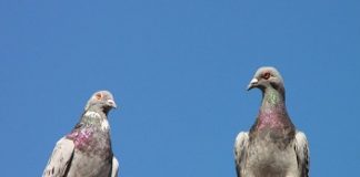 1. No telhado do prédio em frente um pombo corteja uma fêm...