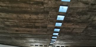 O teto desta igreja tem a forma de uma onda sendo visíve...