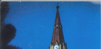 Embora o relógio da sólida e boa igreja ainda funcione, o s...