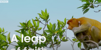 Estes macacos probóscides vivem na floresta inundada do Born...