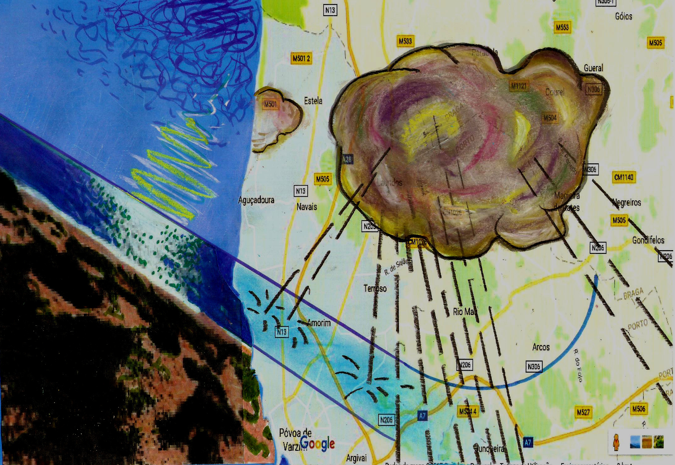 pelos valos na areia.