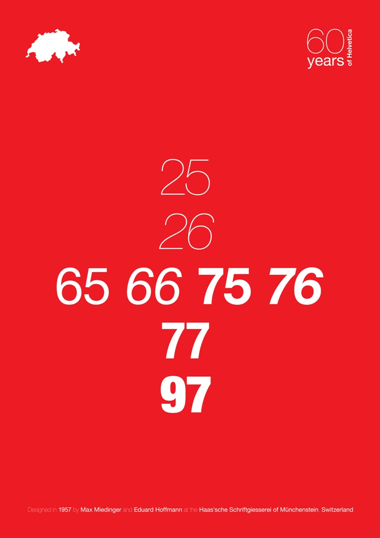 Em 1957, os tipógrafos Max Miedinger e Eduard Hoffmann, do estúdio Haas’sche Schriftgiesserei (Munchenstein, Suíça) tinham como objectivo desenhar um tipo de letra para competir com o tipo germânico Akzidenz-Grotesk. A nova família tipográfica teria de se reger por atributos como racionalidade, facilidade de leitura e ser desprovida de quaisquer significados associativos, quer culturais, socio-económicos, ou de género. Nascia assim a Neue Haas Grotesk, família que hoje conhecemos como Helvetica.